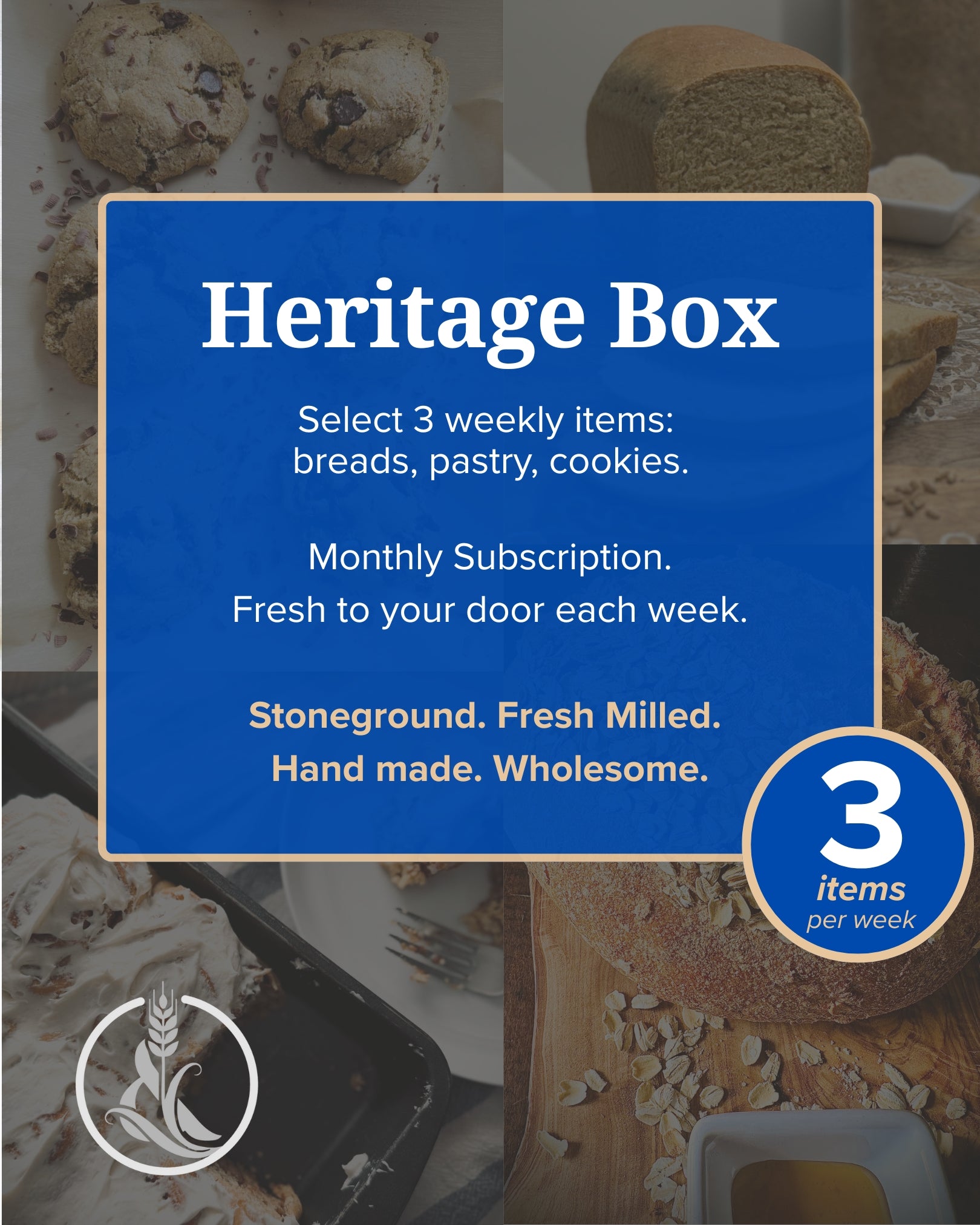 We mill and bake fresh weekly, then deliver to your door.
